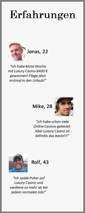 Mein Glück fordere ich regelmäßig insbesondere im Internet heraus – so auch in dem Luxury Casino. Selbstverständlich kommt es vor, dass ich nicht immer gewinne und schlechtere Tage erlebe. Doch insgesamt muss ich sagen, dass meine Luxury Casino Erfahrungen insgesamt außerordentlich positiv ausfallen. Auf das Casino bin ich durch einen Freund aufmerksam geworden. Er teilt […]